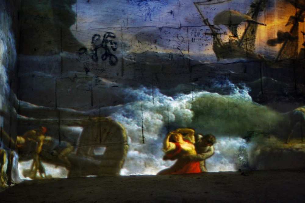 Kolorowe obrazy przesuwały się po ścianach, zmieniając się co pewien czas na nowe. Towarzyszyła im muzyka i opowieść literacka. Wszystko w olbrzymiej podziemnej przestrzeni.